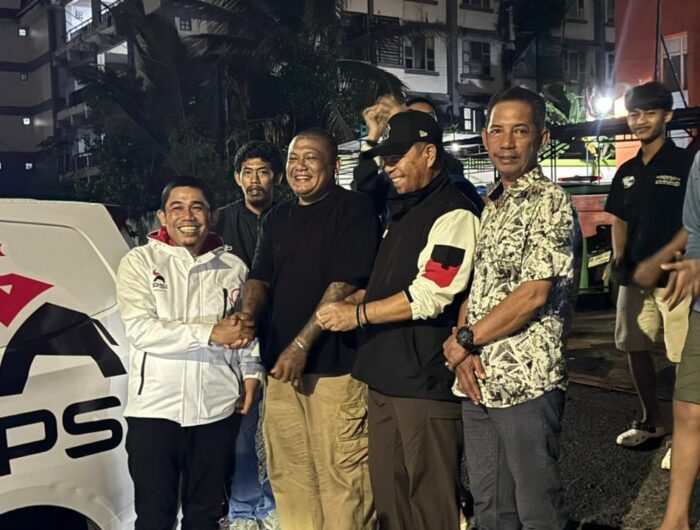 LENSA, MAKASSAR – Ketua DPD Partai Solidaritas Indonesia (PSI) Kota Makassar, Sukarno Lallo, menyerahkan satu unit ambulans kepada Komunitas Pemuda Rajawali Fams dan Dan Makassar Racing di Jalan Rajawali, Makassar, Minggu malam (27/10/2025).