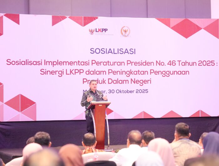 “Kami ingin memastikan 50 persen belanja pemerintah benar-benar dinikmati oleh pelaku usaha di Kota Makassar,” kata Munafri dalam Sosialisasi Implementasi Perpres Nomor 46 Tahun 2025 tentang Sinergi LKPP dalam Peningkatan Penggunaan Produk Dalam Negeri, di Hotel Four Points by Sheraton Makassar, Kamis (30/10/2025).
