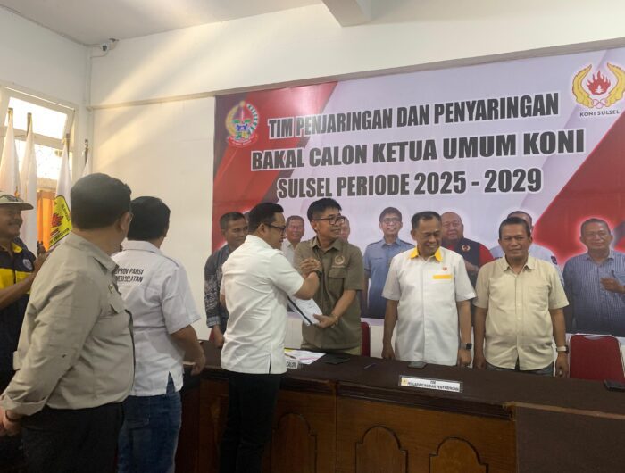 LENSA, MAKASSAR – Dharmawangsa Muin berpeluang besar untuk menduduki Ketua Umum Komite Olahraga Nasional Indonesia (KONI) Sulawesi Selatan (Sulsel) periode 2025-2029. Dari lima orang yang mengambil formulir penjaringan calon Ketua Umum KONI Sulsel, hanya Wakil Bupati (Wabup) Gowa itu yang mengembalikan berkasnya.