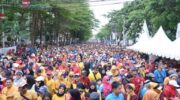 Tema sporty ala sirkuit balapan tampak mendominasi dekorasi ruangan. Ornamen bendera balap, panggung berbentuk lintasan, hingga replika speedometer raksasa menambah semarak suasana pesta.