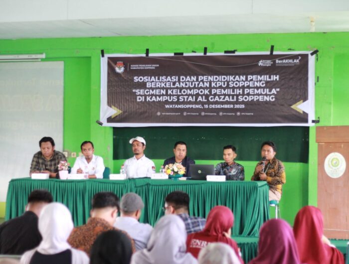 Hari ini, KPU Soppeng sukses menggelar kegiatan Sosialisasi dan Pendidikan Pemilih Berkelanjutan Tahun 2025 yang secara spesifik menargetkan mahasiswa dan mahasiswi Sekolah Tinggi Agama Islam (STAI) Al Gazali Soppeng, yang masuk dalam segmen vital yakni Kelompok Pemilih Pemula.