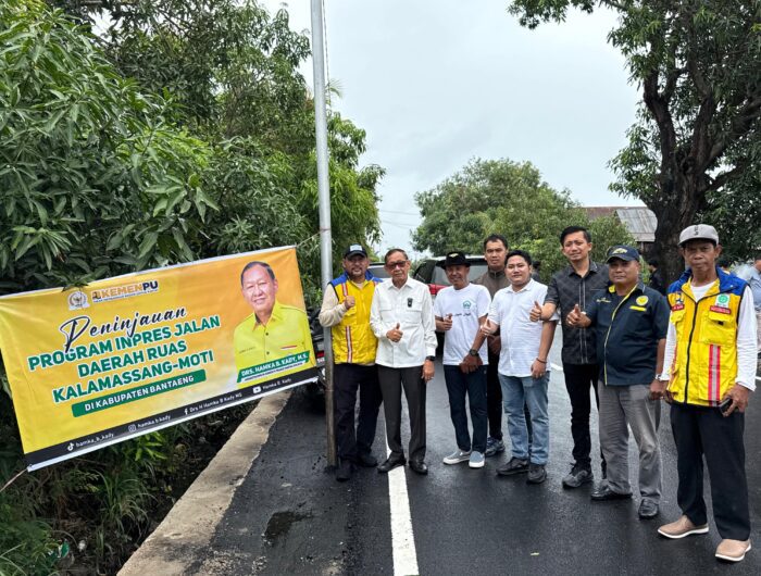 LENSA, BANTAENG – Anggota Komisi V DPR RI, Hamka B Kady, meninjau pelaksanaan Inpres Jalan Daerah (IJD) ruas Kalamassang – Moti, Kecamatan Pa’jukukang, Kabupaten Bantaeng, Sulawesi Selatan, Sabtu, 10 Januari 2026. Ruas jalan sepanjang 3,9 kilometer tersebut diperbaiki dengan menggunakan dana APBN sebesar Rp21 miliar.