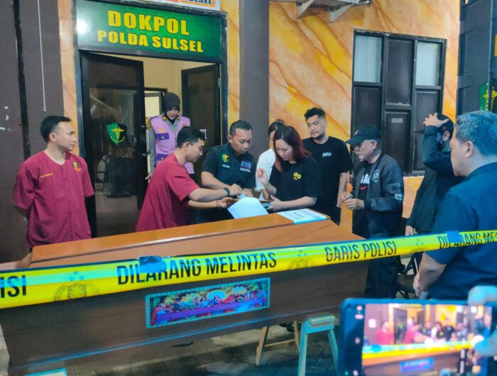 Penyerahan ini berlangsung di Biddokkes Polda Sulsel di belakang Rumah Sakit (RS) Bhayangkara, Jalan Kumala, Kota Makassar.