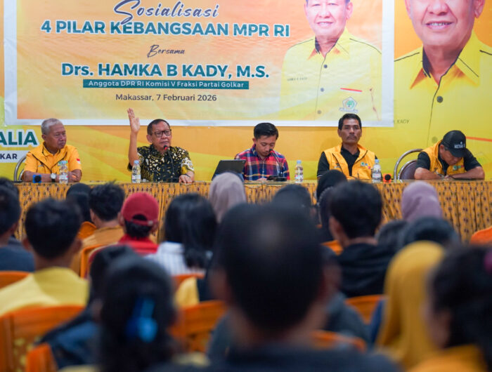 LENSA, MAKASSAR — Dalam upaya memperkuat wawasan kebangsaan, Anggota DPR RI Hamka B Kady menggelar kegiatan Sosialisasi 4 Pilar Kebangsaan yang berlangsung di Kota Makassar, Sulsel, Sabtu (7/2).