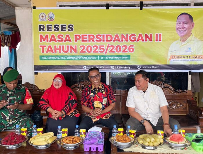 LENSA, GOWA – Anggota DPRD Provinsi Sulawesi Selatan sekaligus Ketua Fraksi Partai Golkar, Lukman B. Kady, melaksanakan kegiatan Reses Masa Persidangan II Tahun 2025/2026 di Kelurahan Mawang, Kecamatan Sombaopu, Kabupaten Gowa, Senin (16/2/2026).