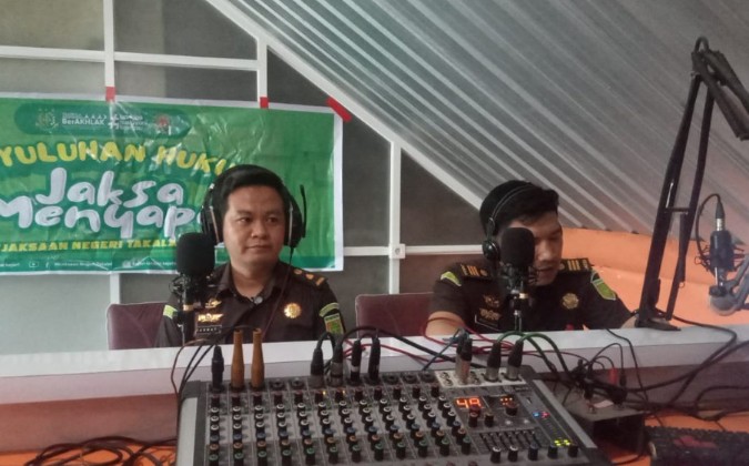 Pada edisi kali ini, talk show menghadirkan dua narasumber dari Kejaksaan Negeri Takalar, yakni Kepala Seksi Tindak Pidana Umum Rahmat Hidayat, SH, serta Kepala Seksi Pemulihan Aset dan Pengelolaan Barang Bukti Achmad Imam Lahaya, SH., MH. Acara dipandu oleh host Dewi dengan suasana interaktif dan edukatif.